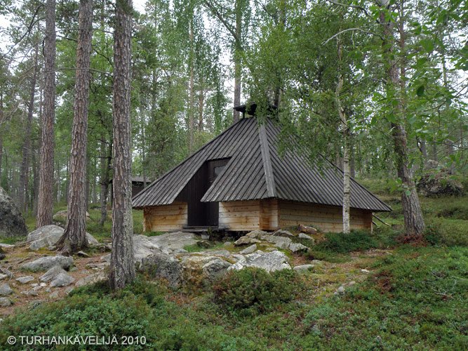 Jääsaaren kota. Taustalla vessa ja varasto.