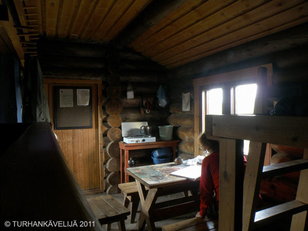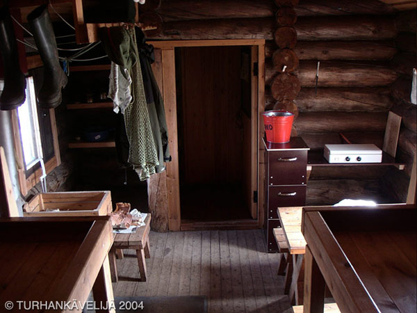 Kuivin tuvan makuutilat. Laverien välistä johtaa