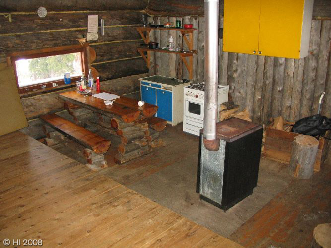 Uudempaa tukkikämpän sisustusta.