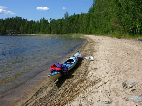 suuntaan. Hiekkarannan laidalla pitkä laituri,