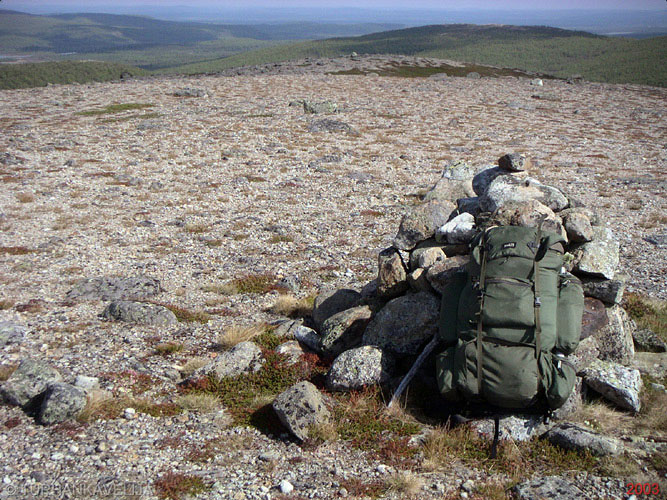 Roavvoaivvin etelälaki. Mikä lie luonnonjärjestys pitänyt tämän laen huipun hiekkaisena. Olisi luullut aikoinaan tuulen ja sateen vieneen kaiken irtomaan mennessään.