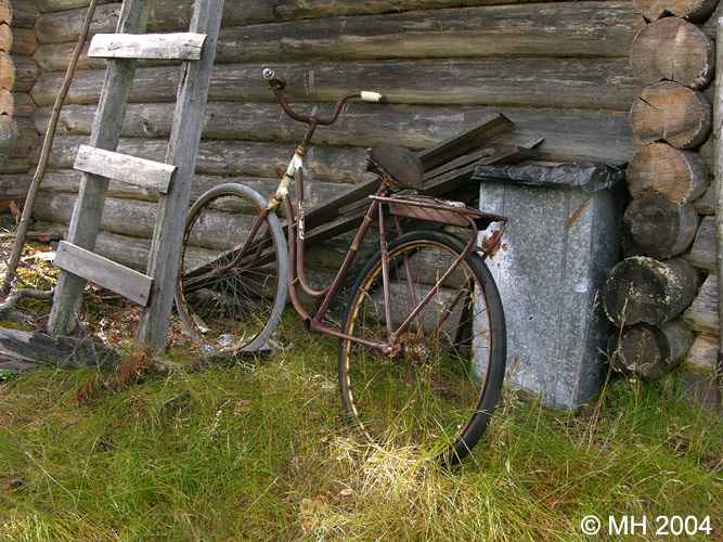 Tuvan mystinen pyörä. Roska-astiakin oli mutta kukaan ei kuskannut roskia pois.