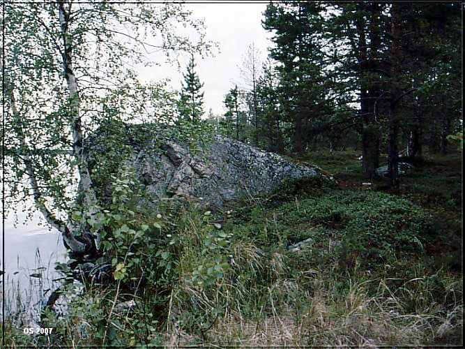 Hillasaaren kammin paikka on ollut aivan rannalla ison kiven kyljessä.