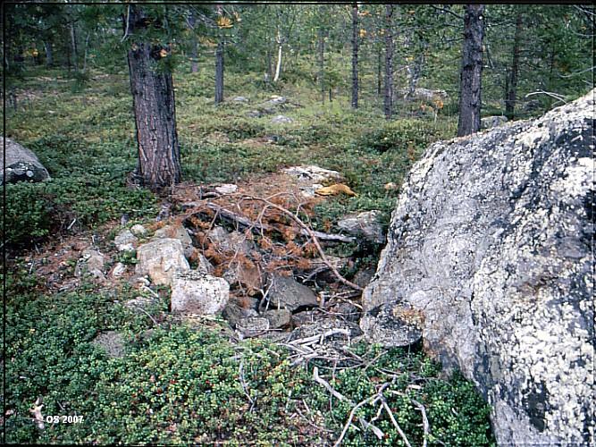 Kammin vierellä olevan kiven toisella puolella on jäänteitä mahdollisesta kivien alla olleesta kellarista.