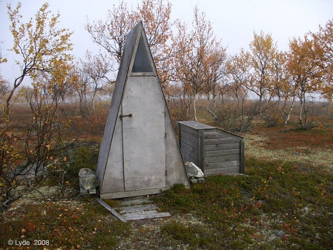 muodostunut nurmikenttä. Kämpän kyljessä on puusuoja jonka
