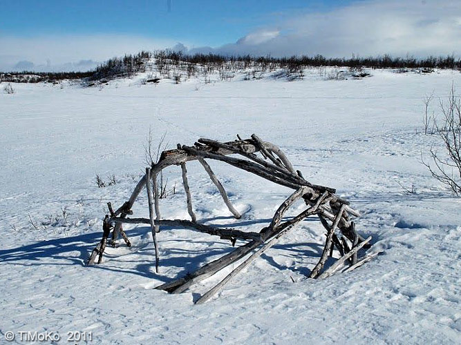 haamu, tukirakenteet pilkistää hangen päälle. Norjan