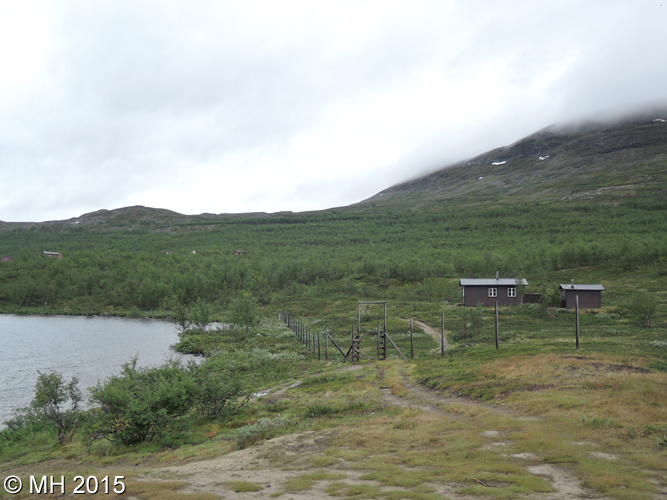 Koltaluoktan porokylä näkyy tuolla takana. Päivätupa on täsää lähempänä, poroaidan takana.