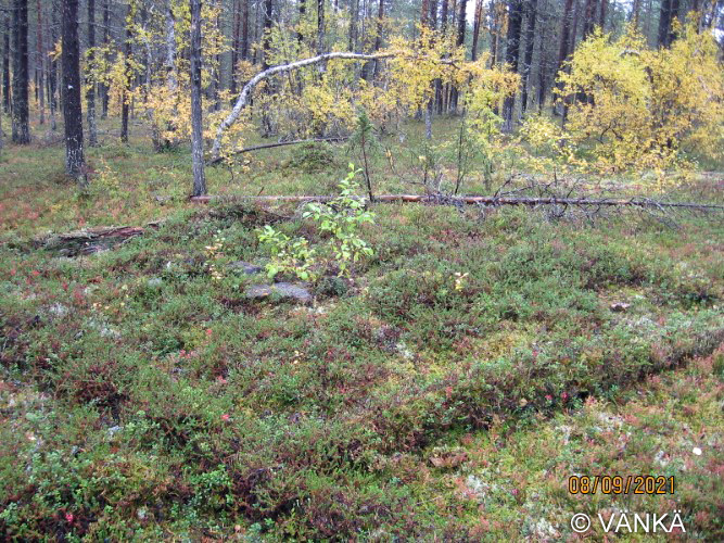 etepuolella noin 250m Rajan kämpästä kaakkoon. Ei