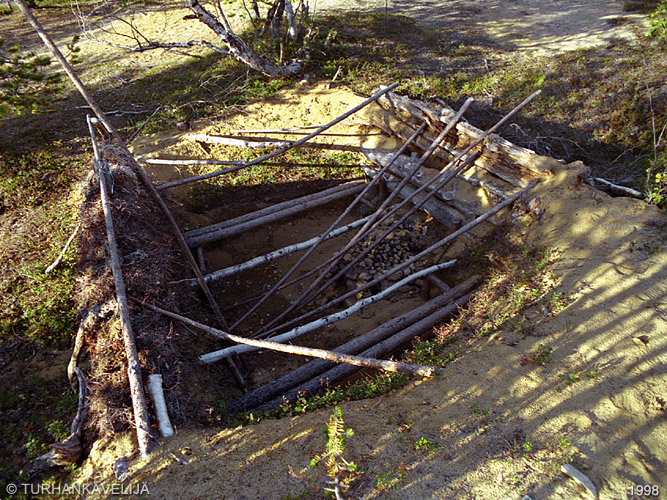 Kiellaron "sauna". Retkeilijöiden rakentama sauna lammen itärannalla.