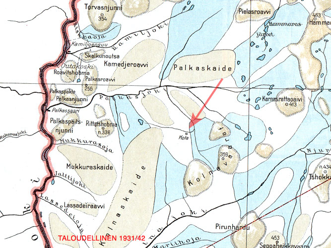 kartassa 1934-1942 on merkintä "Kota" ja topokartasta