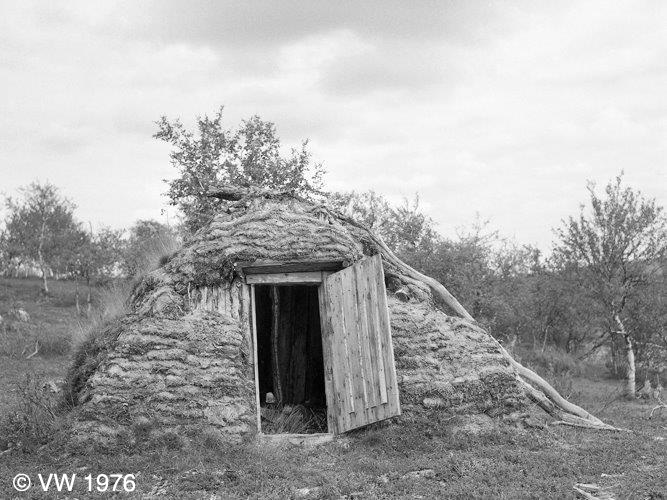 ja osa sivuseinistä on sortunut sisään. Kota on
