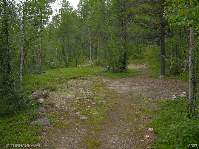 Tähän tulee tie ja täällä on ollut joitain rakennuksia. Tarkaan ei maastosta enään näe missä on ollut ja mitä.