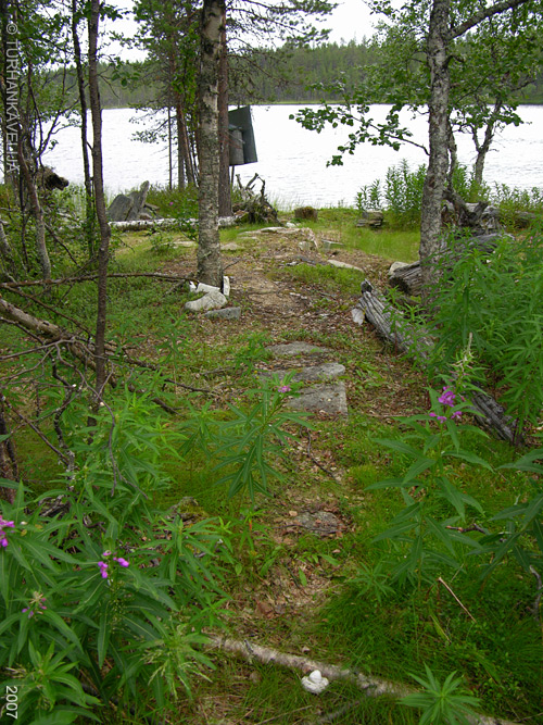 Taatsijärven rantaan johtaa kivetty polku. Onko tässä ollut sauna ?