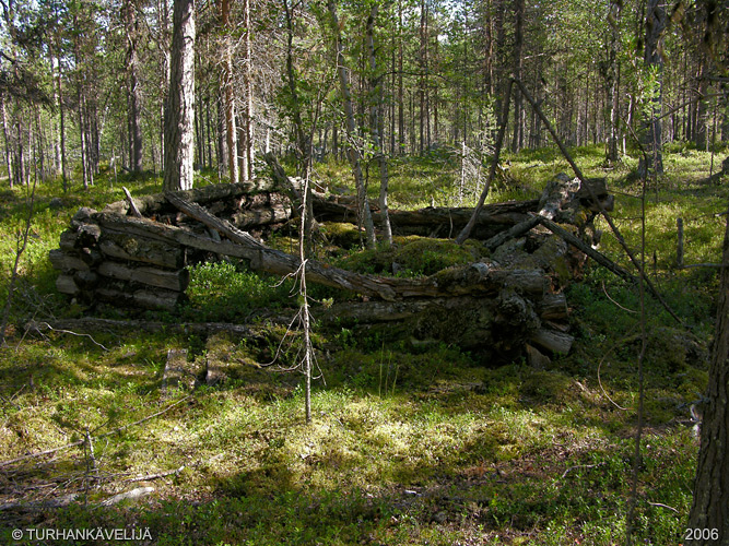 Kiimaselän tukkikämppien takana on pienempi rakennus jonka sisällä on suuri kivikasa. Olettaisin rakennuksen olevan sauna. Voihan tuo kivikasa ola toki piisinkin jäänne.
