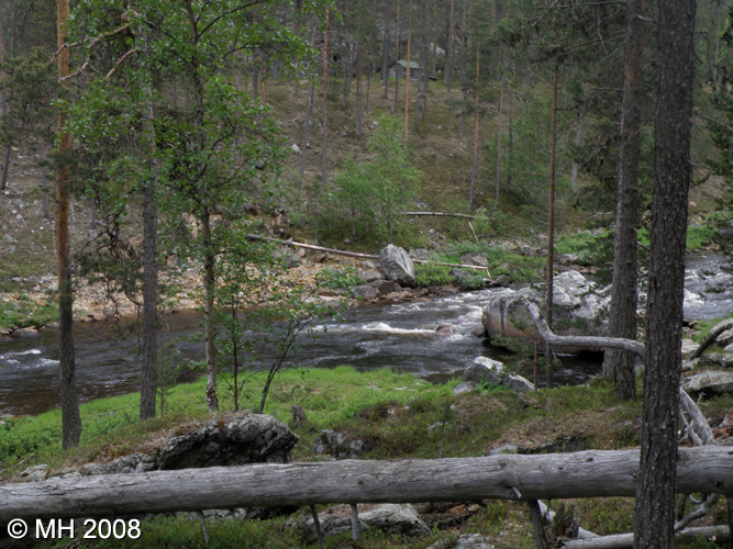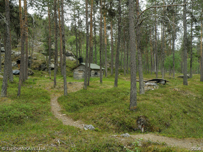 Kämppä nähtynä Sotajoen vastarannen rinteeltä.