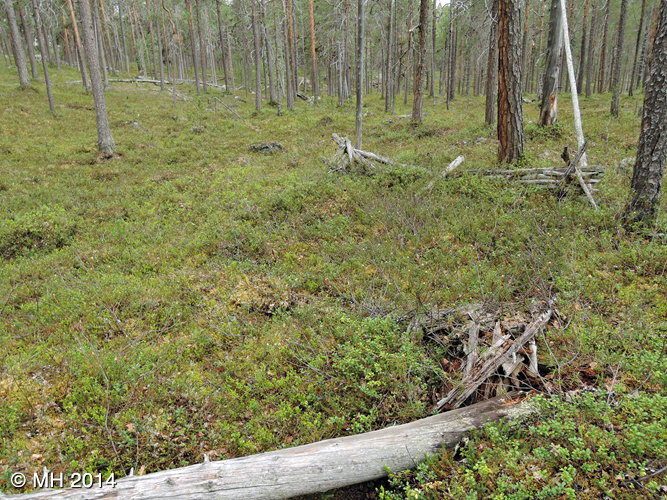Kolmannessa jotain puutavaraa ja neljäs on kokonaan varvikon peitossa.