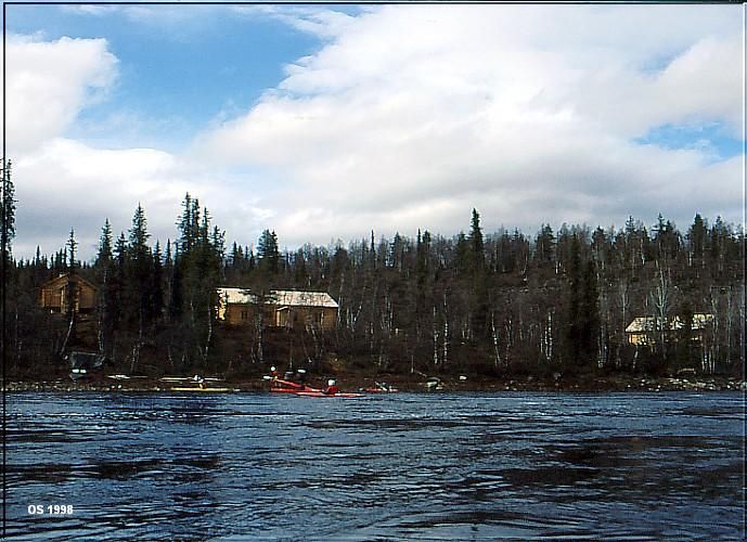 länsirannalla noin 700m Kyläjoen suusta ylävirtaan. Purettu 2008 kiikarietäisyys 25.08.2008 1998-99 7595080 3481220 Elokuva