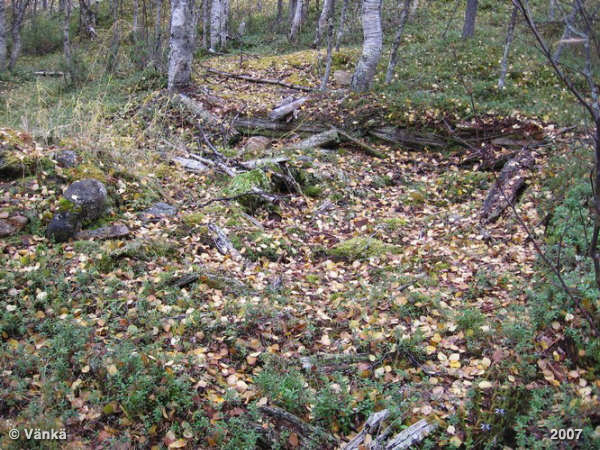 uudempi nuotiopaikka mutta ei hirsikämpän jämiä.